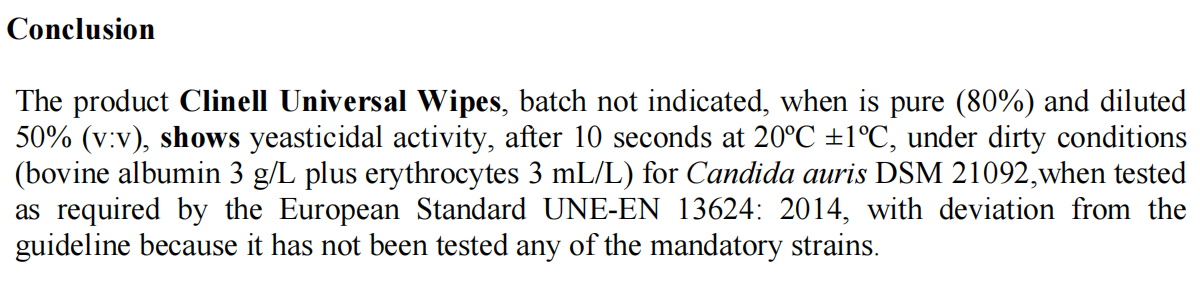 可使用伽瑪衛(wèi)生濕巾/消毒濕巾對患者的床、椅子、床頭柜、門把手、物表環(huán)境、洗手臺等高頻接觸物表進(jìn)行擦拭。根據(jù)歐盟EN13624檢測方法,在臟污條件下,英國同款的Clinell消毒濕巾能有效殺滅耳念珠菌。