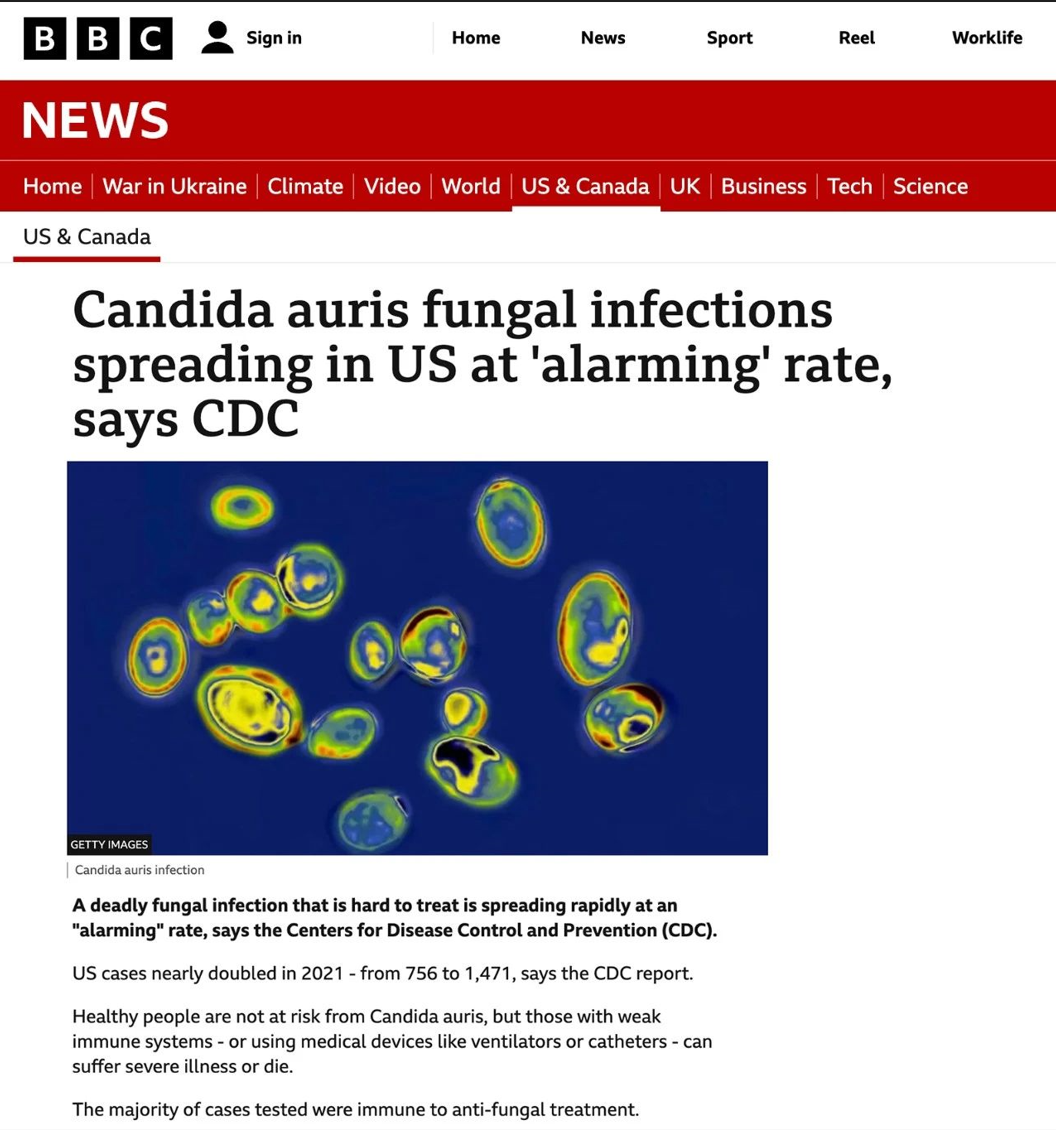 美國疾病控制和預(yù)防中心(CDC)發(fā)布信息,一種名為耳念珠菌 (C. auris) 的致命耐藥真菌感染在美國以前所未有的速度傳播,目前已遍布美國一半以上的州,成為緊迫的公共衛(wèi)生威脅。根據(jù)CDC的數(shù)據(jù),感染耳念珠菌的患者在90天內(nèi)死亡的比例約為50%。而在受感染的住院病人中,死亡率的范圍可能會更廣泛,估計(jì)在30%至60%之間。