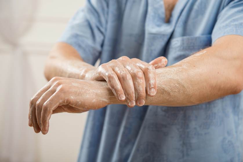 3.在進(jìn)行手術(shù)前,醫(yī)務(wù)人員應(yīng)使用肥皂/洗手液和流動(dòng)水刷手,再使用含酒精的免洗手消毒液進(jìn)行外科手消毒,如果中途手被弄臟了,那么應(yīng)該重新按照此步驟清洗雙手。