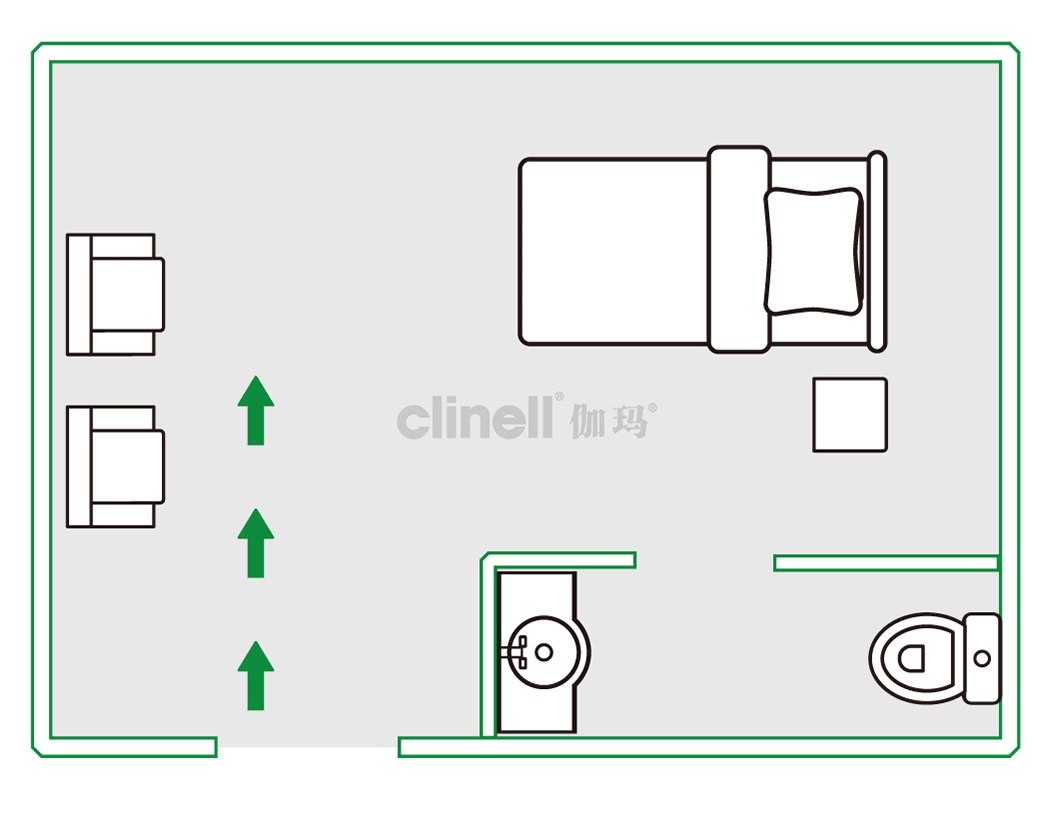在多床位區(qū)域,以相同的方式清潔每個患者區(qū)域,例如,從床腳開始并順時針移動清潔。