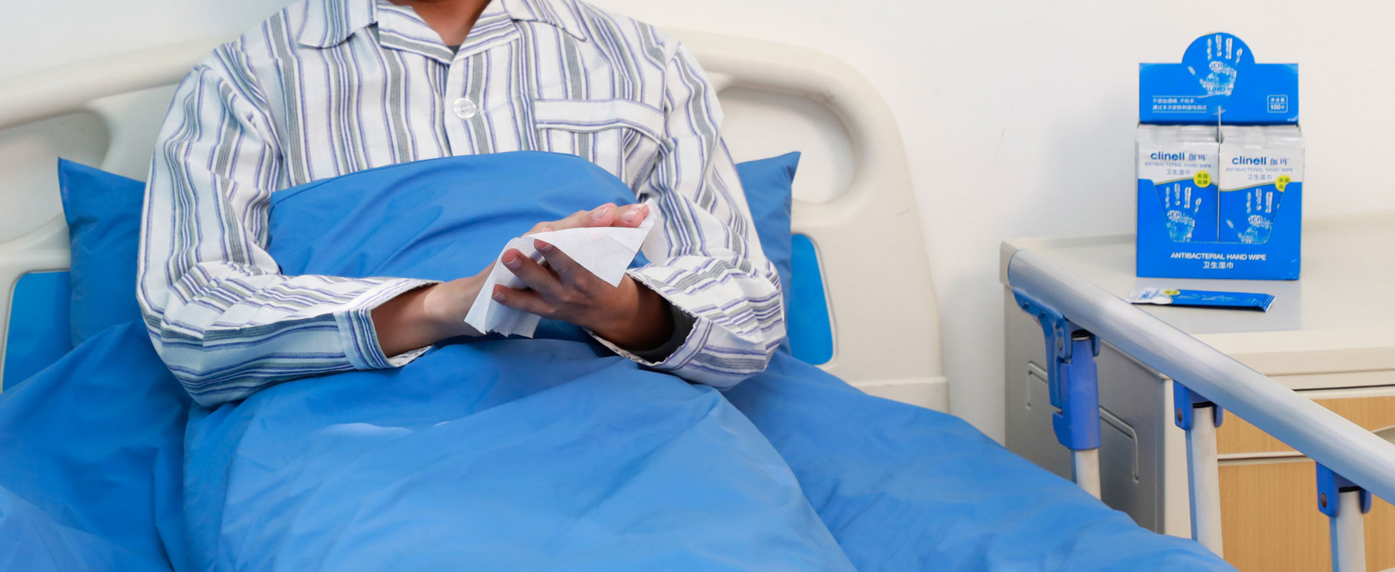 ·接觸床欄桿、床頭柜、門把手、遙控器或電話等醫(yī)院物體表面后