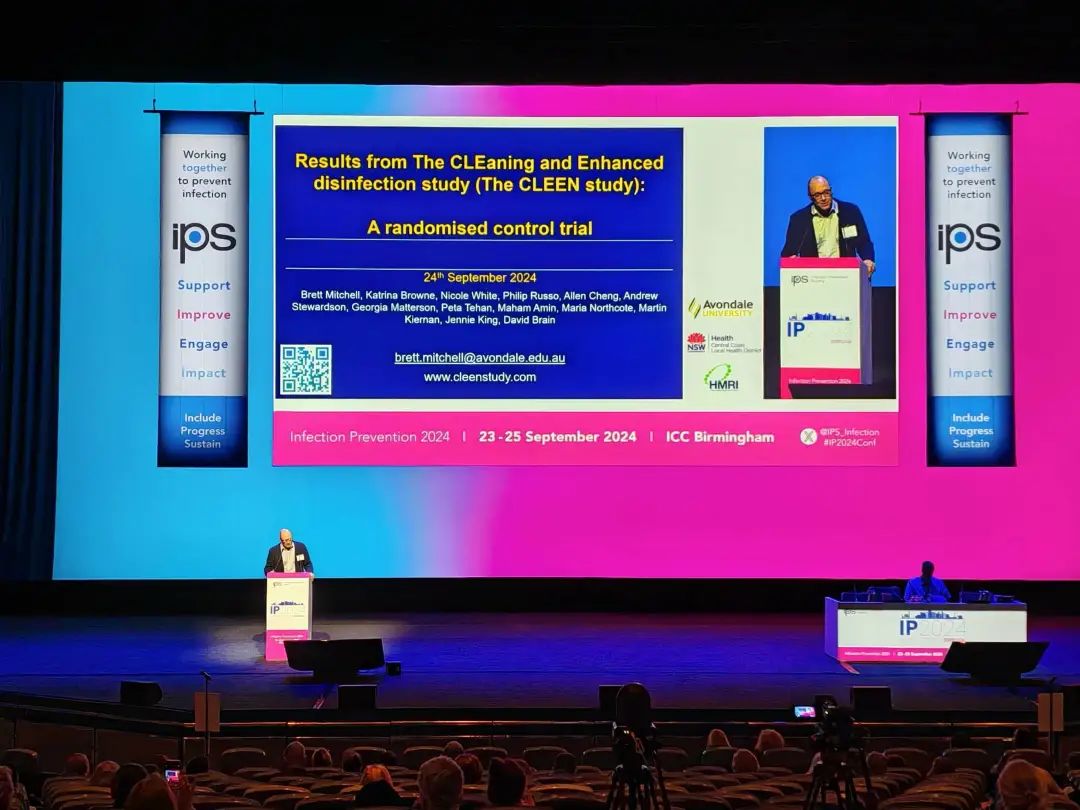 作為感染預(yù)防與控制領(lǐng)域的權(quán)威專家,Brett Mitchell教授以其深厚的學(xué)術(shù)功底和豐富的實(shí)踐經(jīng)驗(yàn),為參會(huì)者帶來了題為“Results from The CLEaning and Enhanced disinfection study (The CLEEN study): a randomised control trial”的精彩演講。