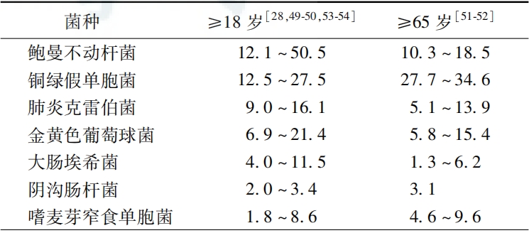 呼吸機相關(guān)性肺炎患者常見細菌的分離率