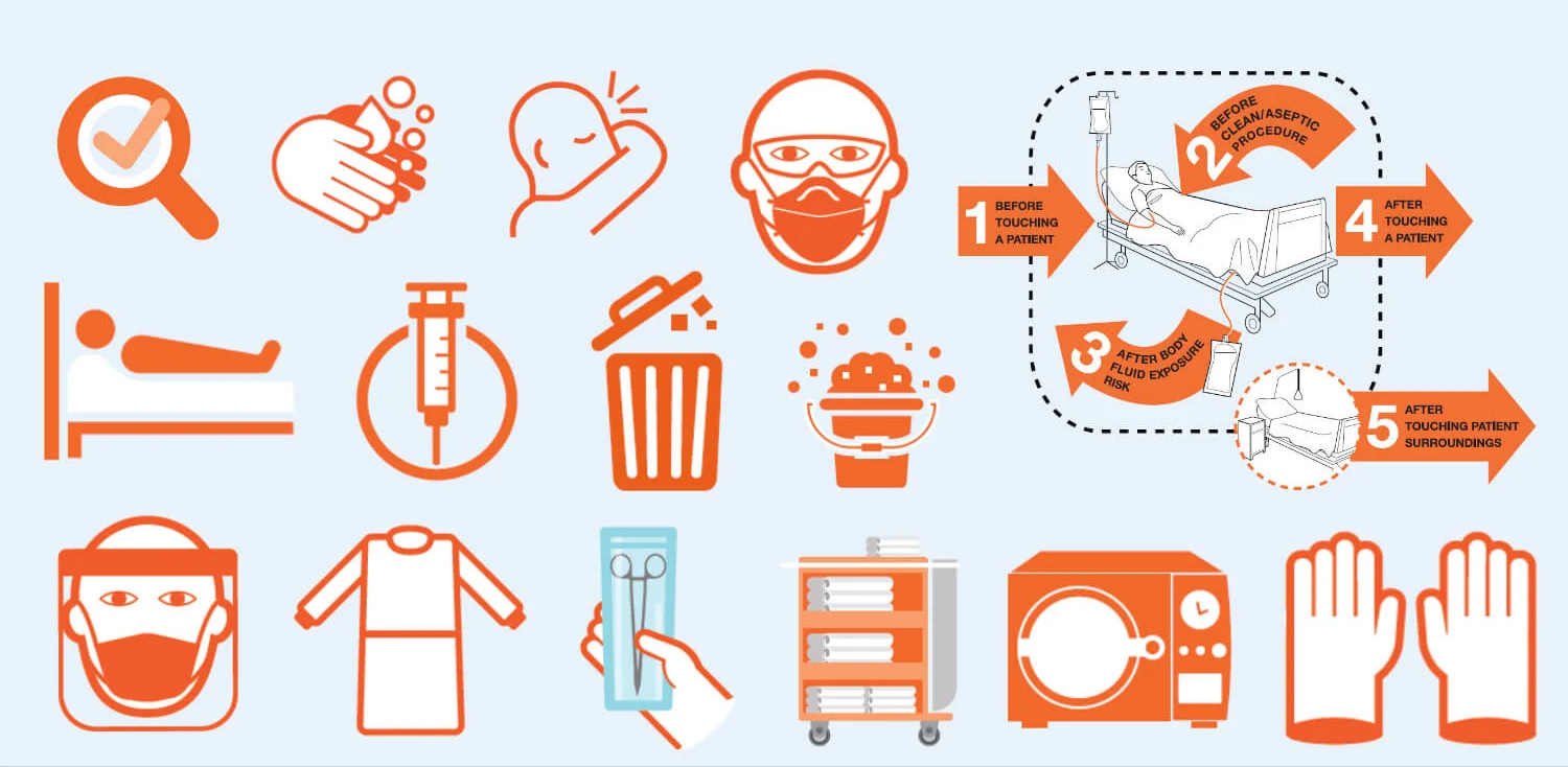 手部衛(wèi)生被認(rèn)為是減少引起醫(yī)療相關(guān)感染的傳染源傳播的最重要方法之一。醫(yī)務(wù)人員應(yīng)在接觸患者前、清潔或無菌操作前、暴露患者血液體液后、接觸患者后、接觸患者周圍環(huán)境后五個時刻應(yīng)采取手衛(wèi)生措施,戴上手套之前和脫下手套之后務(wù)必做好手衛(wèi)生。手部衛(wèi)生設(shè)施應(yīng)包括指導(dǎo)海報(bào)。